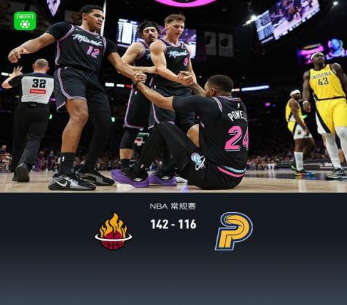 第四节热火尼古拉-约维奇拿下10分,步行者马图林拿下13分,最终热火142-116战胜步行者